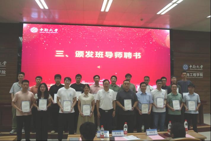 会议伊始,全体人员奏唱国歌。随后,学院党委副书记李玲芝为副班导师颁发聘书,学院党委书记肖来荣为班导师颁发聘书。