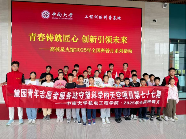 为积极响应全国科普月“提升全民科学素养,激发创新活力”的号召,进一步点燃青少年对科学探索的热情,9月27日下午14:00,我院麓园青年志愿者服务站的志愿者们在中南大学工程实践创新中心开展了“守望科学的天空”第七十七期科技体验活动。50余位小朋友参与本次活动。
